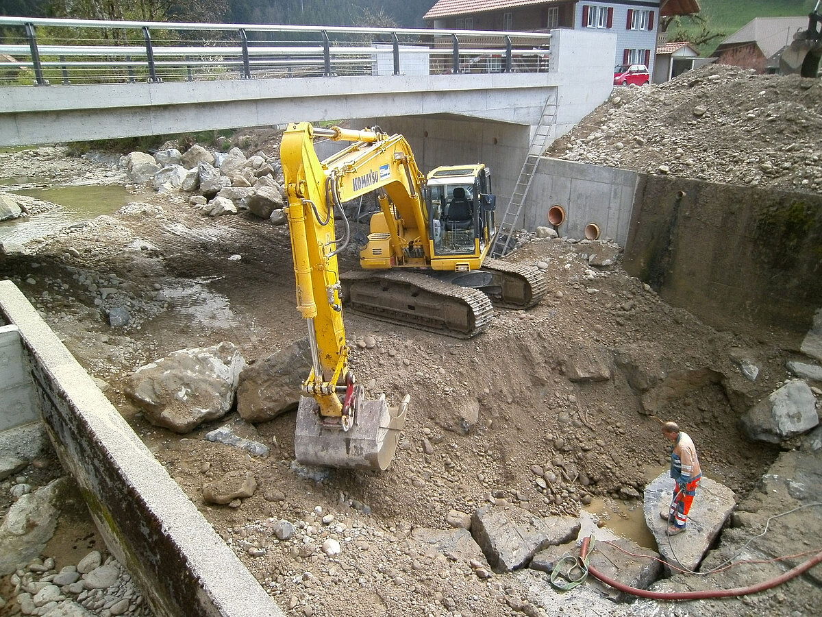 Dank unzähligen Neubauten und Sanierungen von Betonsperren in Ilfis, Gohl und Emme sind wir zu Spezialisten im Wasserbau geworden. Zu unseren Stärken zählen ebenso der Bau von Widerlagern und Brücken.