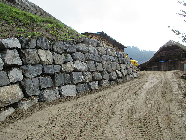 Wir bieten Ausführungsarten mit Natursteinblöcken oder Holzverbauten an. Auf Wunsch auch Betonsperren. Unsere Maschinen sind mit diversen Anbaugeräten ausgestattet.